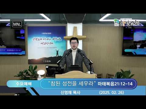 2025년 2월 26일 수요예배설교제목 : 참된 성전을 세우라설교본문 : 마태복음21: 12-14 설 교 : 신영재목사