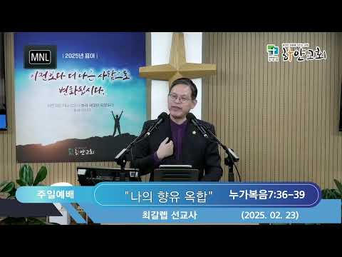 2025년 2월23일 주일예배 설교제목 : 나의 향유 옥합설교본문 : 누가복음7:36-39설 교 : 최갈렙선교사